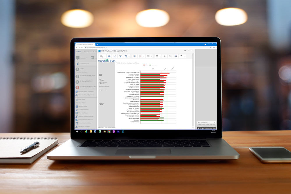 (pour chaque métier un test et des référentiels métiers étalonnés),