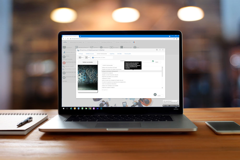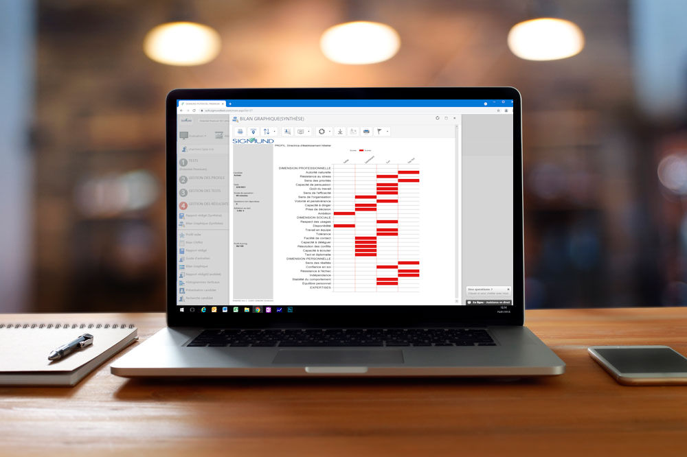 (pour chaque métier un test et des référentiels métiers étalonnés),